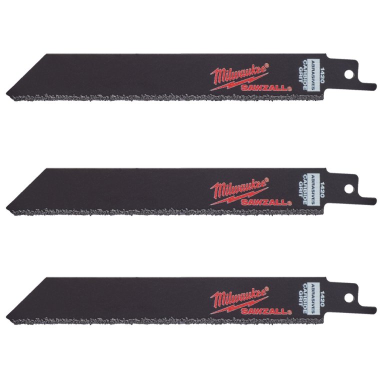 3 lames scie sabre pour matériaux abrasifs, fonte et fibre de verre 150 mm, par le fabricant Milwaukee.