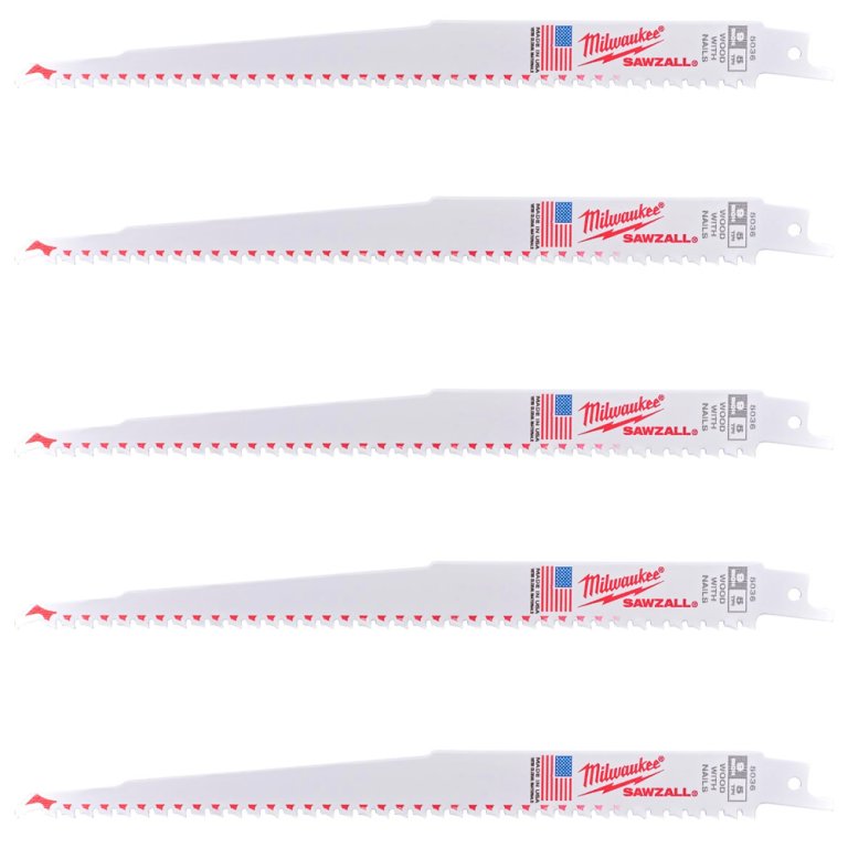 5 lames scie sabre de démolition Thin Kerf bi-métal pour bois 230 mm x 5 TPI, par le fabricant Milwaukee.