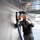 L'adaptateur GFA 12-H est compatible avec les perceuses-visseuses Bosch GSR 12V-35 FC et GSR 12V-15 FC. Il délivre une force de frappe jusqu’à 0,9 J, adaptée aux perçages dans le béton jusqu’à Ø10 mm et aux perçages en maçonnerie jusqu’à Ø16 mm selon le support et l’accessoire utilisé. Son format compact facilite le travail en hauteur et dans les espaces exigus.