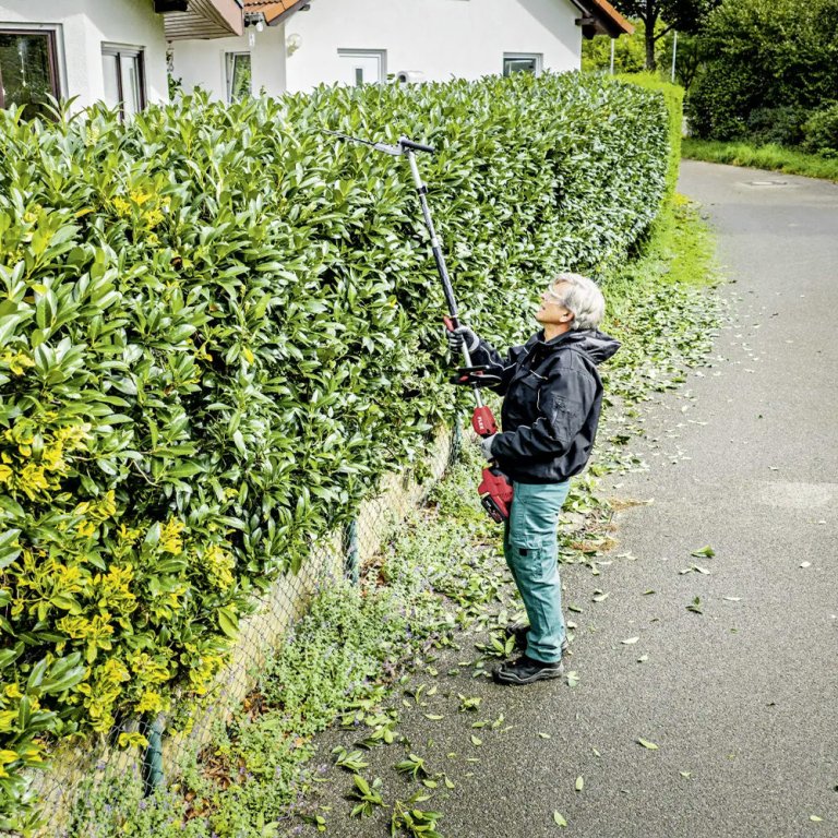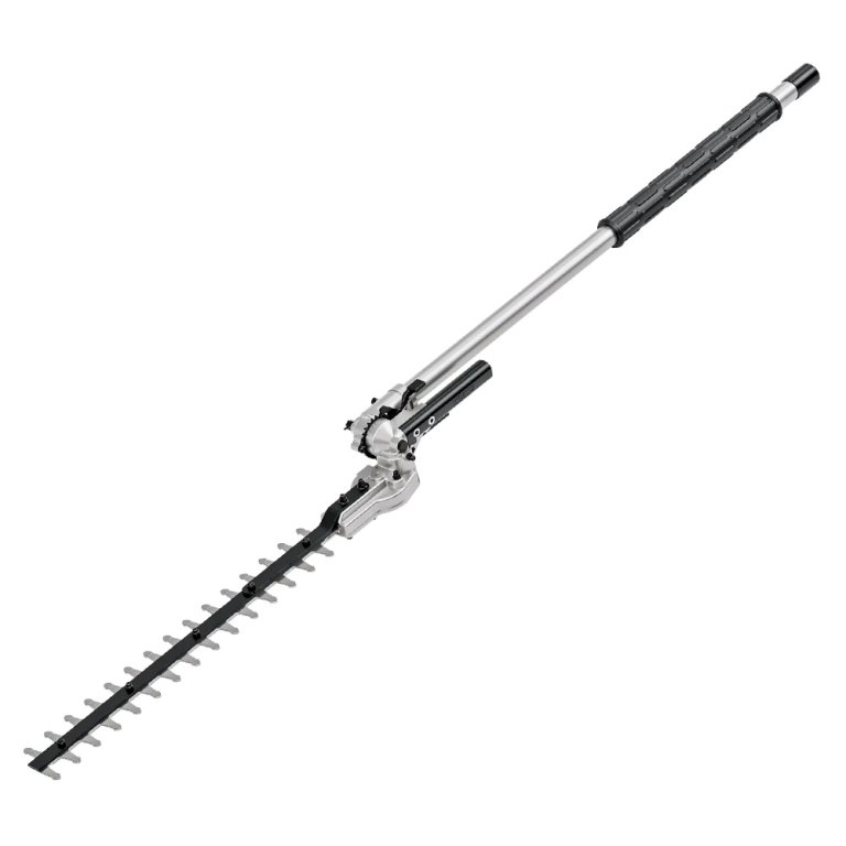 La lame bénéficie d’un affûtage laser des deux côtés pour une coupe nette, avec une capacité de coupe maximale de 20 mm. Avec sa longueur totale de 137 cm, ses 12 angles de coupe réglables et sa plage de pivotement de 170°, cet adaptateur s’adapte à différentes formes de haies et différents angles de travail. Une rallonge optionnelle de 80 cm peut également être ajoutée pour augmenter la portée.
