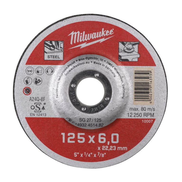 Meule à ébarber métal Ø125 mm Contractor SG 27/125 x 6 x 22 mm - x1, par le fabricant Milwaukee.
