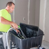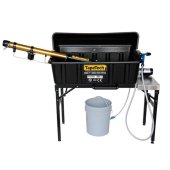 Solution de nettoyage portable pensée pour le chantier lorsque l’accès à l’eau est limité. La station fonctionne à partir d’un seau de 5 gallons (env. 19 L) et génère la pression adaptée pour nettoyer efficacement les outils de finition placo, ainsi que les pinceaux, rouleaux, bacs et autres équipements.