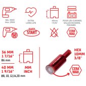 Ils sont dotés de la technologie Easy Start, évitant le coulissement de la perceuse et du trépan lors du perçage. Cela vous évite d'avoir à utiliser un guide de centrage.