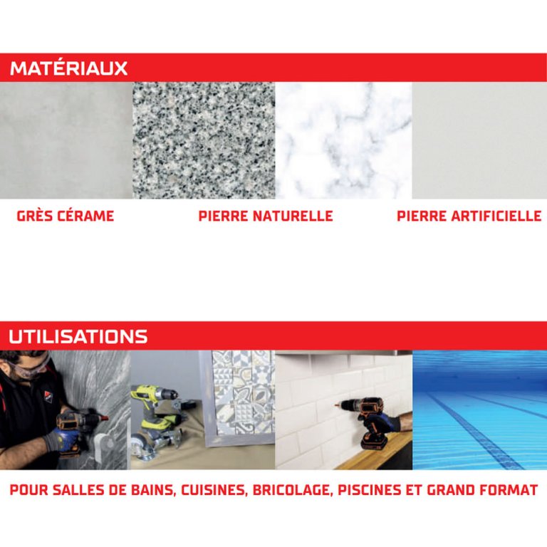 Les trépans diamantés Drygres 4Drill sont conçus pour percer tous les types de carreaux de céramique, en porcelaine, le grès cérame, la pierre naturelle, le marbre et le granit.